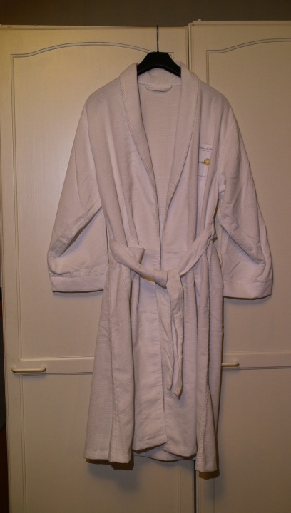 Valkoinen, Minnesarastus logolla Hyvälaatuinen saunatakki 100% puuvilla. Valkoinen Konepesun kestävä